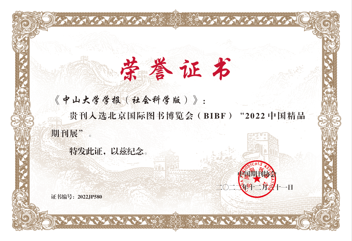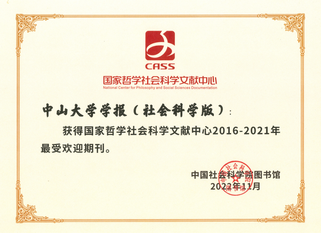 《中山大学学报(社会科学版) 》蝉联国家哲学社会科学文献中心“最受欢迎期刊”